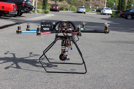 DJI Wookong flight controller with GPS hold, altitude hold, auto takeoff, fail safe, return home, auto land, and auto pilot.